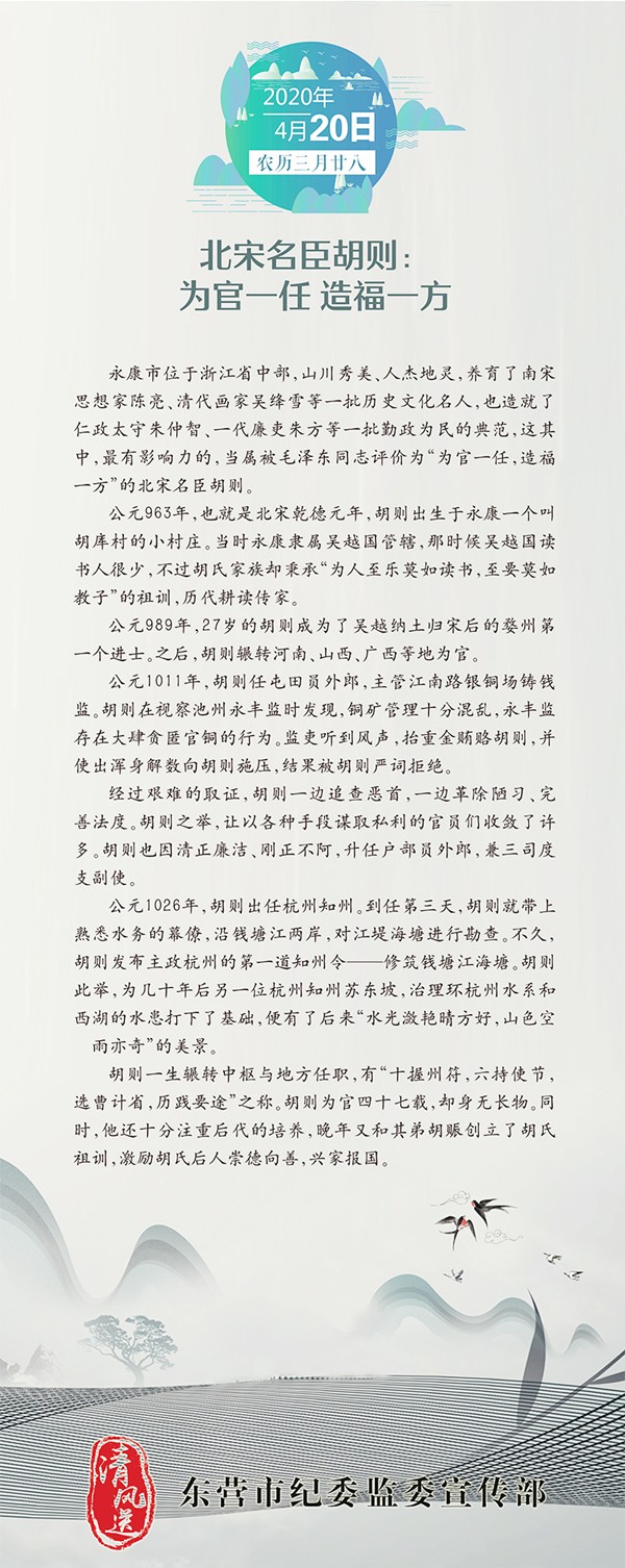 [廉政企业一]北宋名臣胡则:为官一任 造福一方